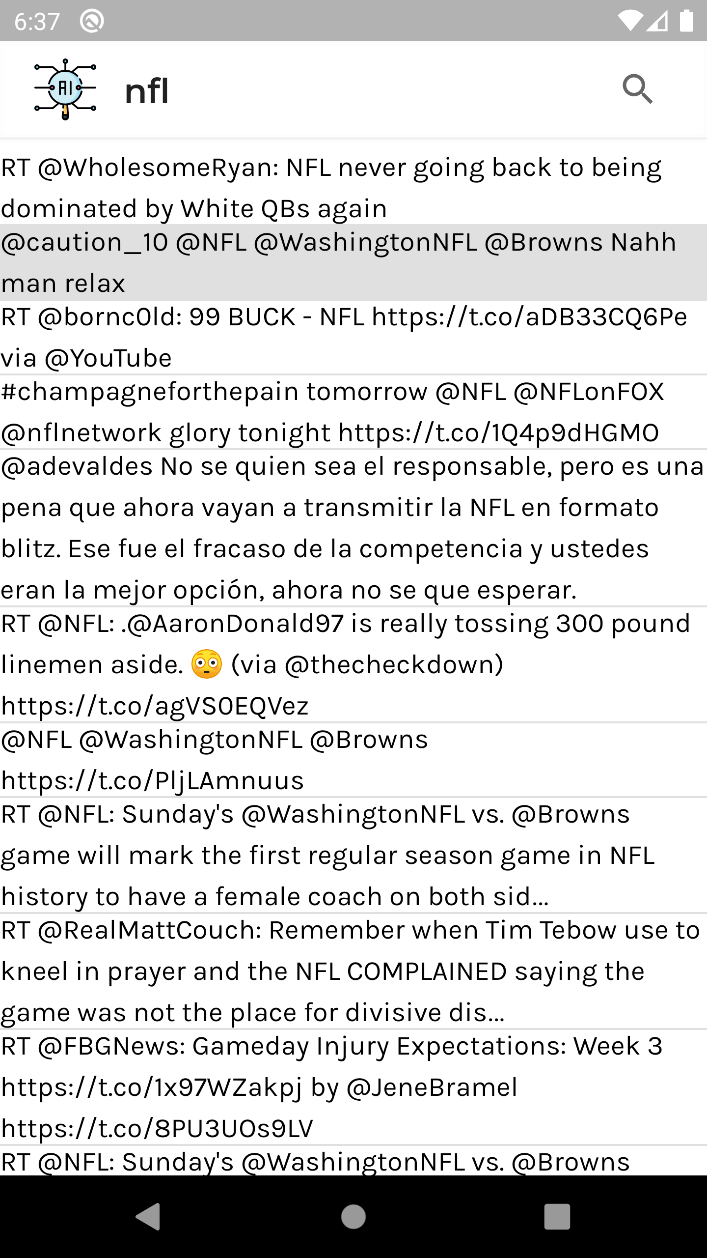 This request will return 100 tweets around the Atlanta Falcons in english only.